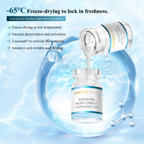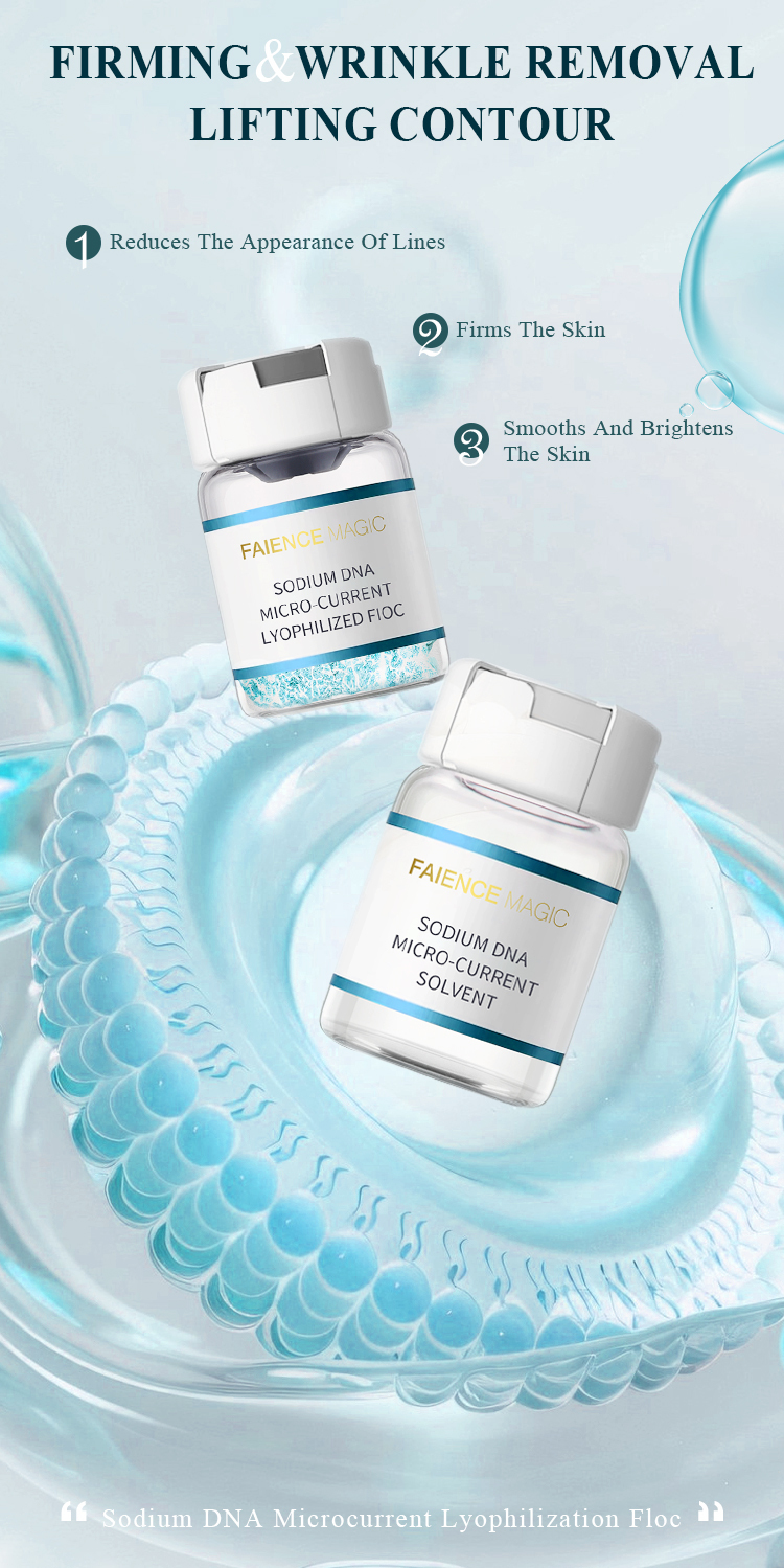 The DNA Sodium Firming and Anti-Wrinkle Fresh Freeze-Dried Floc is the world's first product certified by CMA. It uses naked current bio-pulse energy for introduction. When the fresh freeze-dried floc comes into contact with the skin, it can actively sense the biological signals of the fibrous tissue and generate tens of thousands of times of autologous active bioelectricity, known as the naked current "peptide flow". It can induce collagen synthesis and contraction, activate the extracellular matrix, and improve the adhesion between cells and ECM. This converts the skin's passive absorption into active absorption of fresh small-molecule peptides, stimulating cellular ATP and collagen production to achieve the effects of firming, anti-aging, and repair.